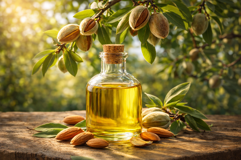 Sweet almond oil, extracted from the nutrient-rich kernels of the almond tree, is valued for its mild aroma, light texture, and wide range of cosmetic and therapeutic benefits.