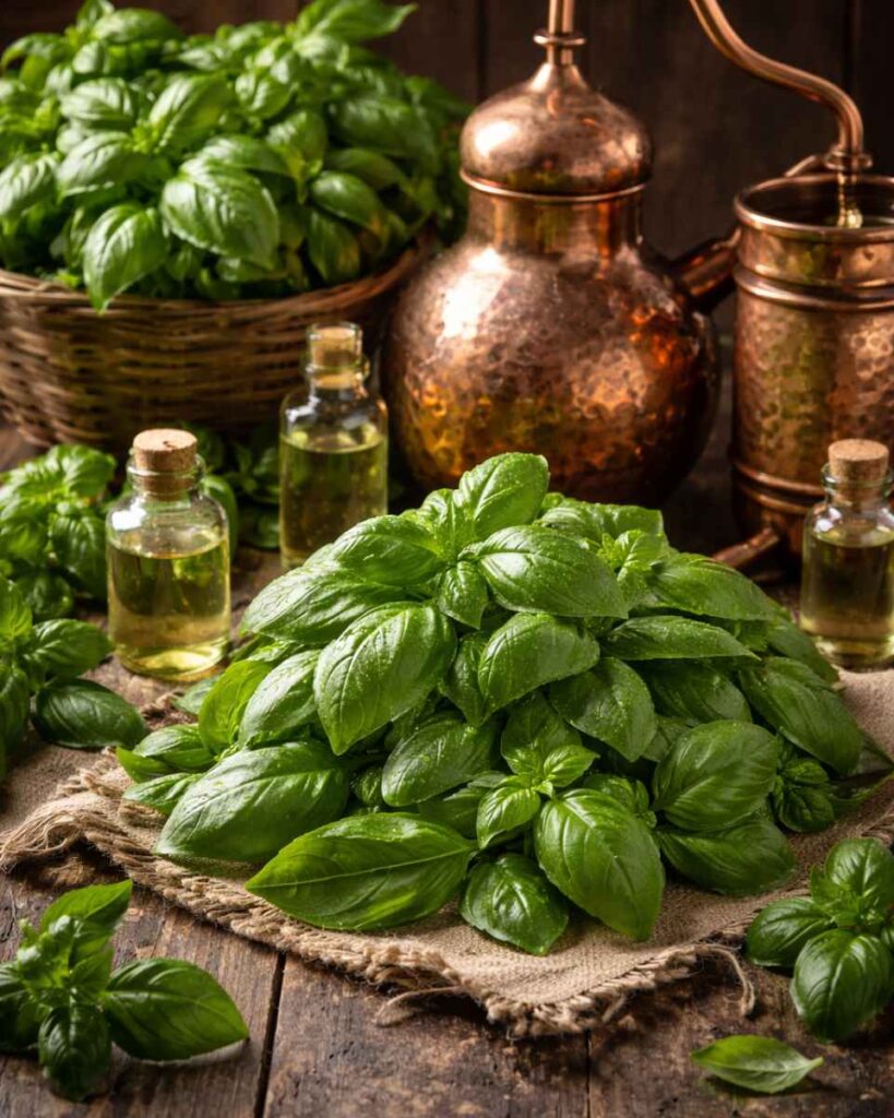 High-quality leaves are carefully selected and cleaned to remove any dirt or impurities for the extraction of basil oil.