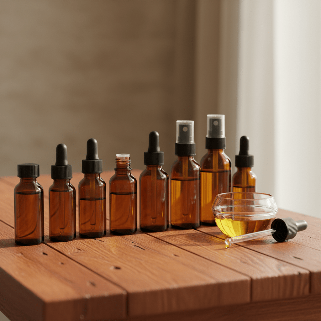 - Dark Glass Bottles: Light kills scent. It breaks down the oil and ruins the smell. Amber or blue glass bottles—specifically spray or roller ones—protect your creation.