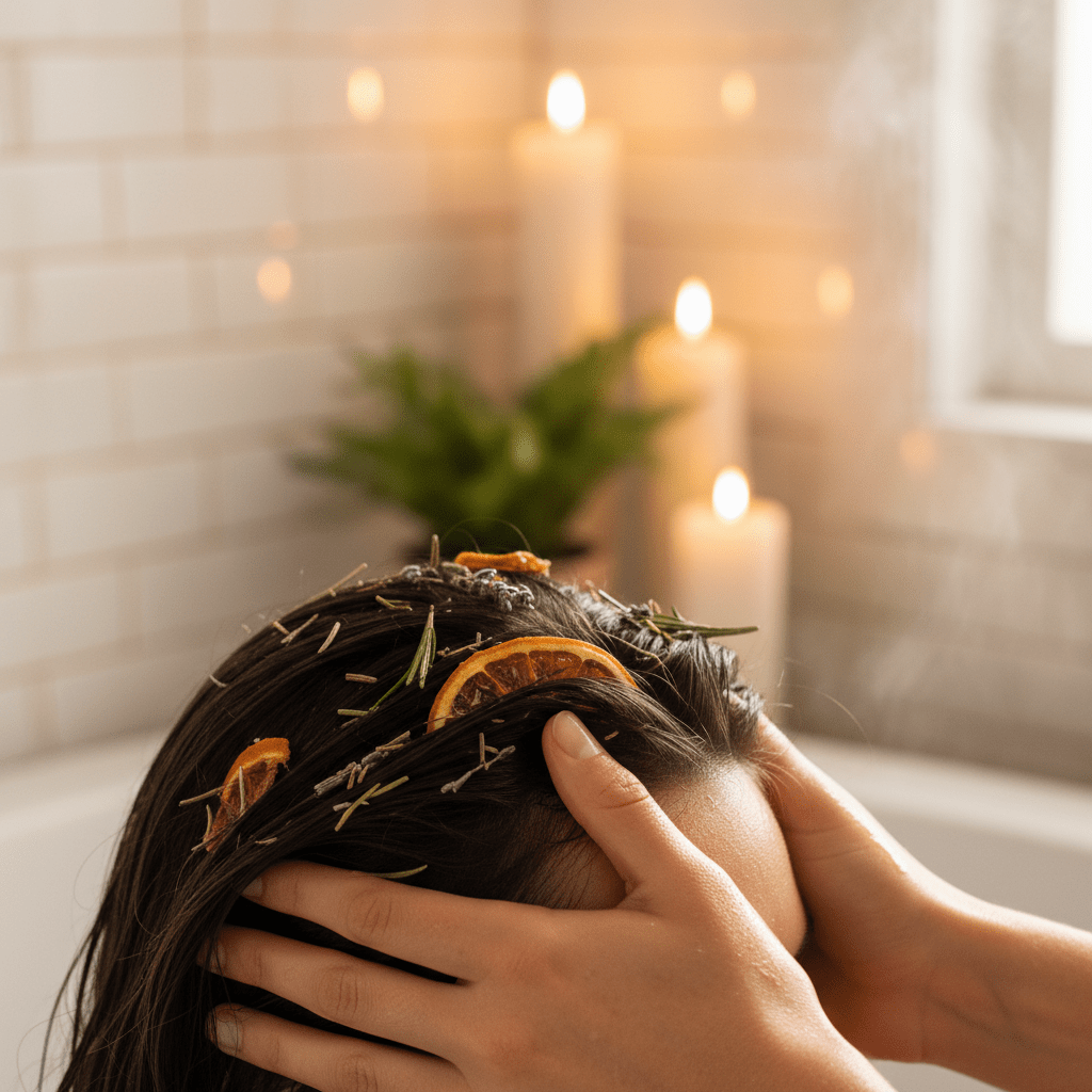 Shikakai oil works well here because it usually cleanses in a softer way than many regular shampoos. So instead of scraping away every bit of natural oil, it tends to leave more of your scalp’s moisture in place. That can help the skin feel less tight and less angry after washing. And if you make your own DIY shikakai oil, you can pair it with a carrier oil that fits your scalp type. Coconut oil or almond oil may suit drier skin, while jojoba oil usually feels lighter on oilier scalps.