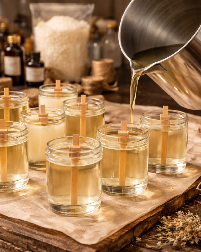 Candles are poured, cured for the required duration, and tested for burn quality, scent diffusion, and appearance.